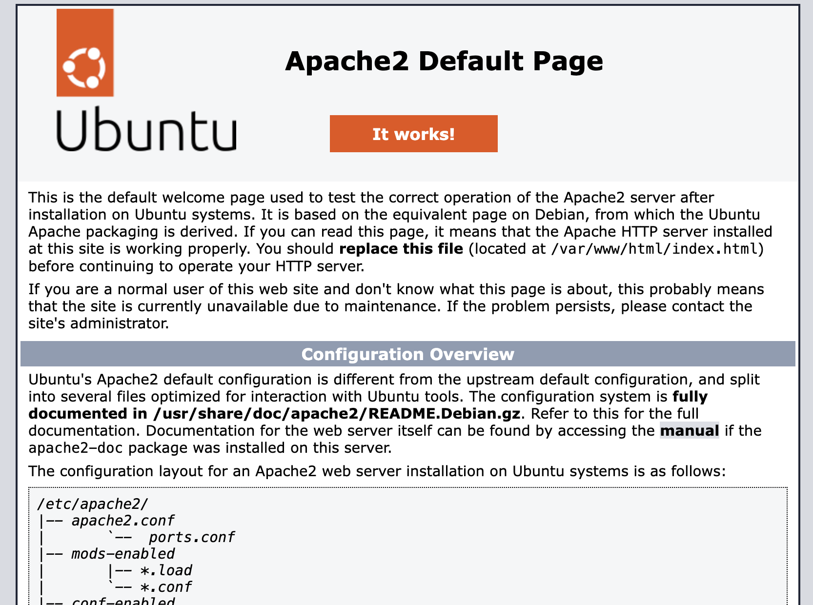 However, it appears that the website is just showing the default Ubuntu Apache page: