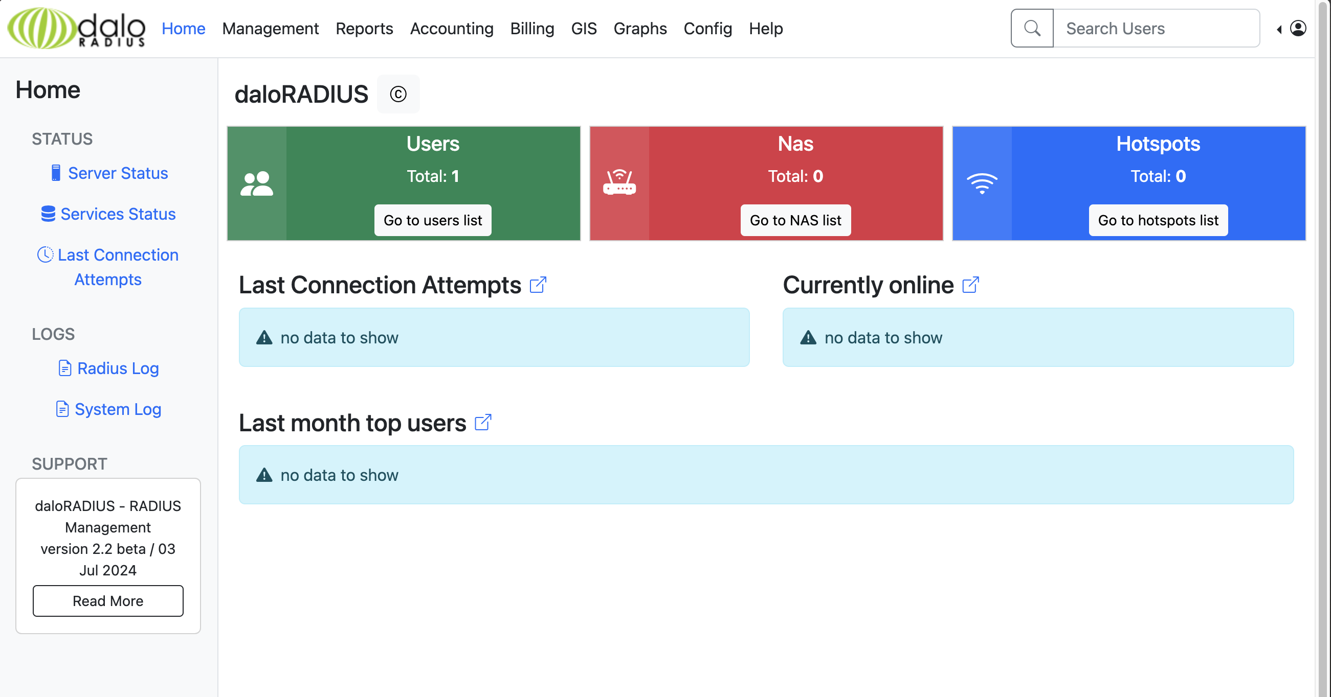I also did some digging for vulnerabilities in Daloradius. There were a few of them out there, but seemed to either be for old versions or for authenticated users. No luck with that either.